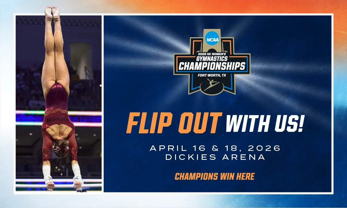 The NCAA Women’s Gymnastics Championship returns to Dickies Arena Thursday, April 16, and Saturday, April 18, 2026.