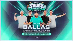 The Dude Perfect: Squad Games Tour is headed to 22 cities this summer! Bring YOUR squad and get ready to experience the Dudes like you’ve never seen them before. This brand new tour is filled with larger than life battles, unexpected twists and for the first time ever – the entire floor will be the battle zone with full 360° seating available! Get ready for a night of excitement, laughter, and competition. Pound it. Noggin. See ya on tour!