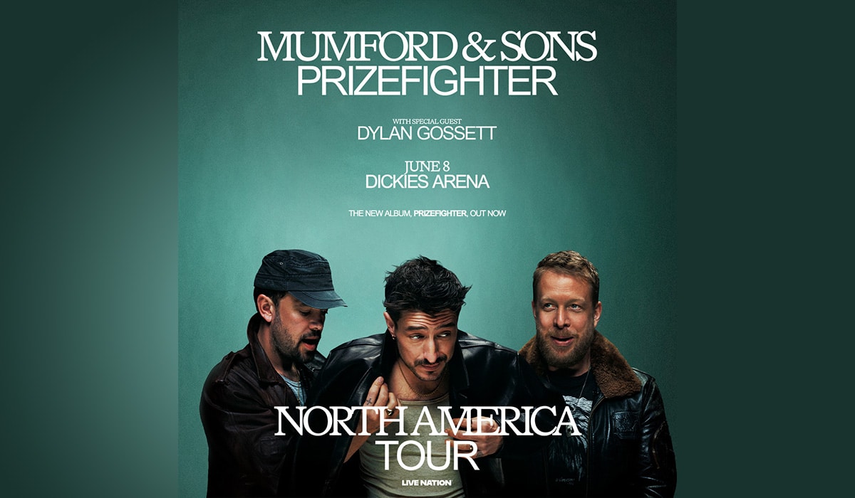 Mumford & Sons is bringing their Prizefighter Tour with special guest Dylan Gossett to Dickies Arena on Monday, June 8, 2026.