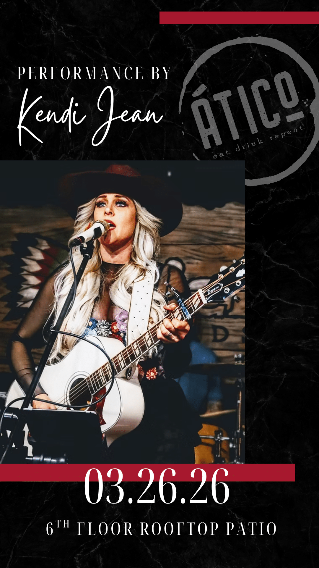 Join us at Ático for Thursday Night Live Music, where talented artist perform on the rooftop each week. This week, Kendi Jean takes the stage from 6–9PM — a performance you don’t want to miss. Enjoy live music, Spanish-inspired tapas, handcrafted cocktails, and views of the Fort Worth skyline above the Stockyards. Spend your Thursday night on the rooftop at Ático!