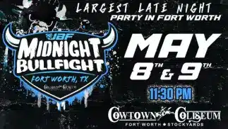 Ultimate Bullfighters Midnight Bullfight is a late-night show showcasing the most extreme athletes in western sports, held TWO NIGHTS ONLY during the biggest week of the year- the PBR World Finals! This show takes the death-defying action and intensity of freestyle bullfighting made popular by Ultimate Bullfighters and adds to it, a competition format of two teams of the world’s best bullfighters competing in fast-paced and exciting “bull games” to earn victory for their team and approval of the fans. Games are unscripted and unpredictable with freestyle bullfighters attempting tricks and stunts while trying to accomplish the objectives of the insane bull games thought up by the bullfighters themselves.