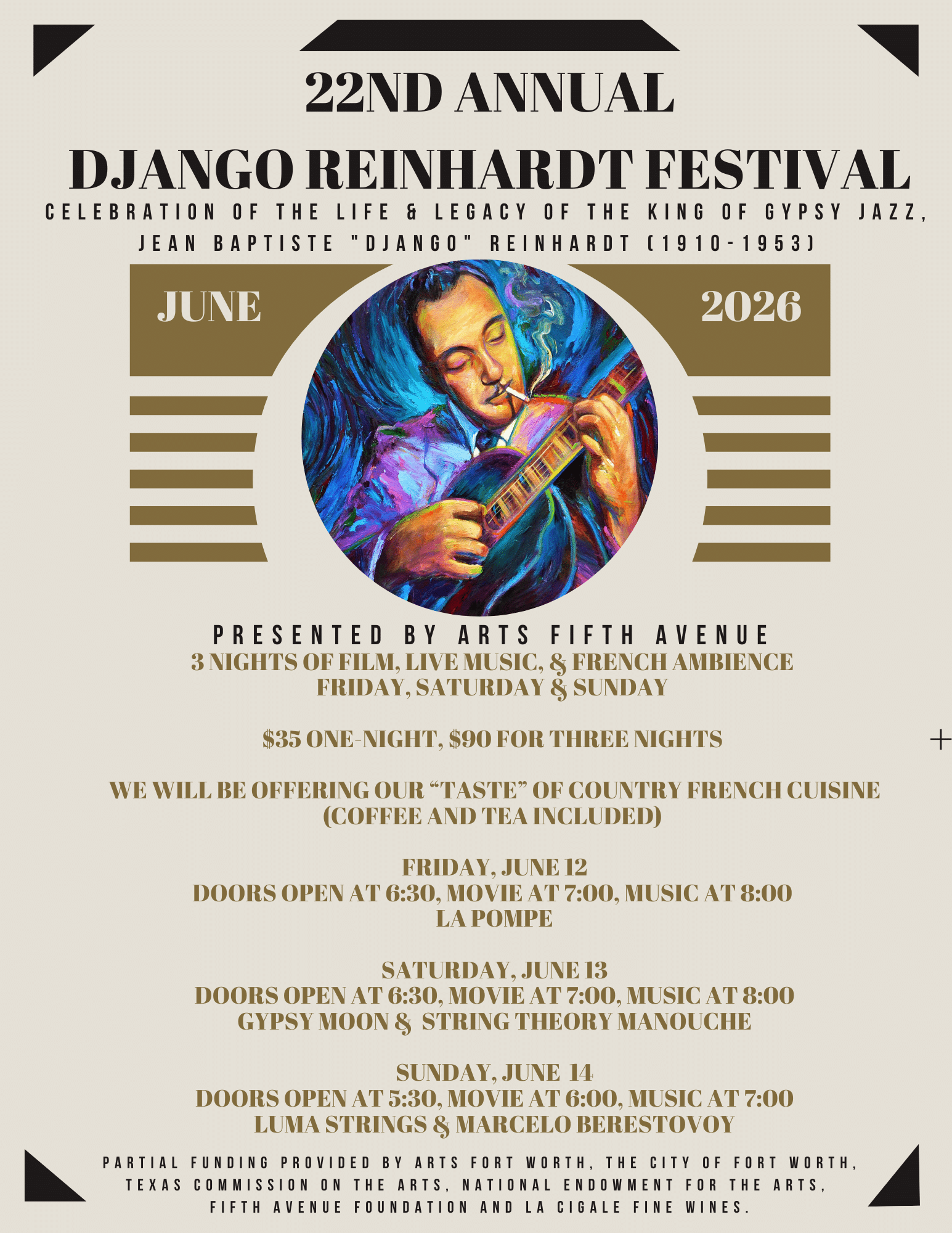 22nd Annual Django Reinhardt Festival 3 Nights of Film, Live Music, & French Ambience FRIDAY, SATURDAY & SUNDAYÂ Tickets purchased […]